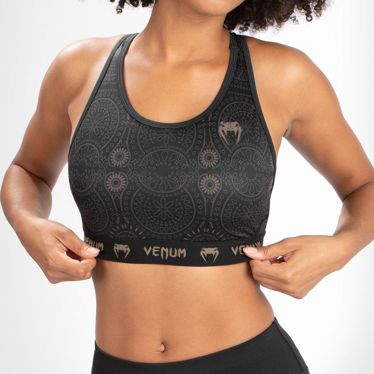 Black/Brown Venum Women Santa Muerte Dark Side Sports Bra