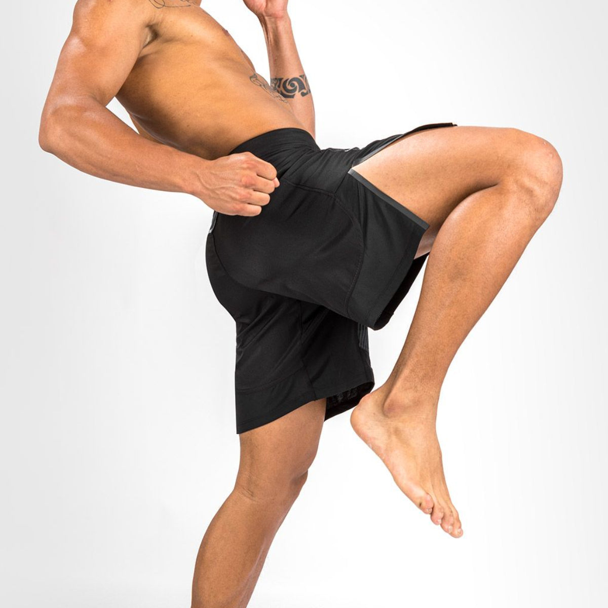 The Venum BioMecha Fight Shorts offer ultimate comfort and mobility for fighters during training and competition. These lightweight shorts are designed to be flexible and durable, allowing you to move with ease while also providing support where you need it most. The reinforced side splits offer full range of motion while the supportive waistband ensures that the shorts stay securely in place, whether you're striking or grappling.