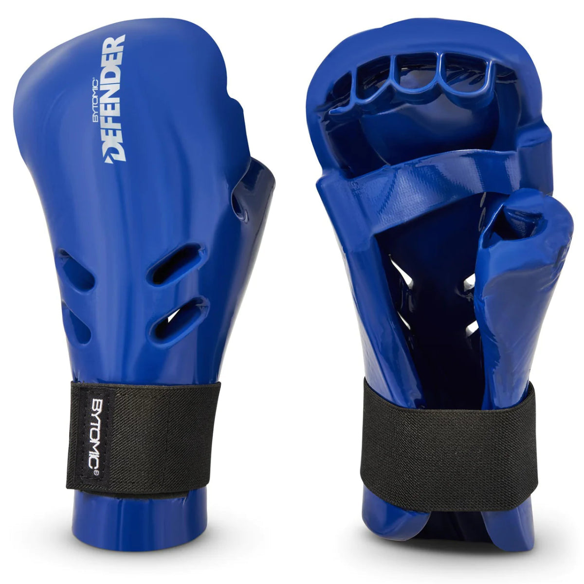 Introducing the new range of Bytomic Defender Dipped Foam protective equipment! The range includes head guards, shin guards, point sparring Kicks and Gloves, all designed for sparring and safety. It's incredibly lightweight, easy to adjust for the perfect fit, and provides the perfect protection in the right spot. Protect your main body parts that are constantly under stress with our Bytomic Defender range. The Bytomic Defender Point Sparring Gloves are light weight and due to the dipped foam construction have a perfect fit. Suitable for Semi Contact Sparring in Tae Kwon Do, Karate and Kickboxing. Open hand style Glove Hook and loop closures with Bytomic woven patch Available in 3 colours: Black, Red and Blue Designed and Tested in the UK Combat Kits are also available