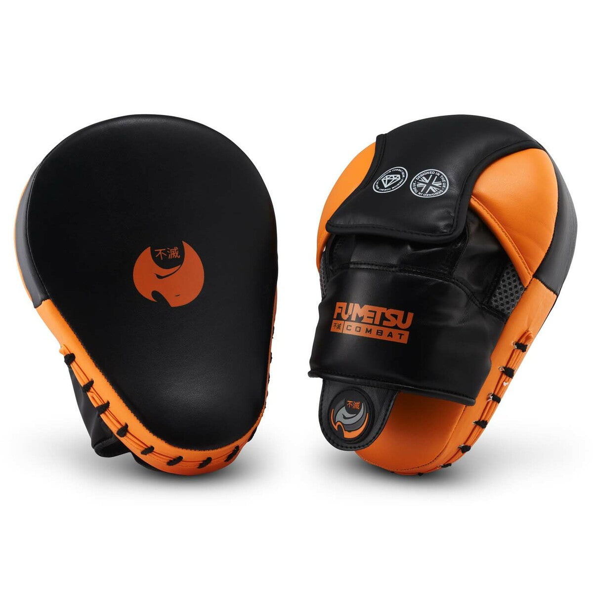 Keep your focus with the Fumetsu Ghost Focus Mitts. These ergonomically designed focus mitts will allow you to perfect your hit accuracy as well as help with rhythm and stance. The contoured palm area and secured hand compartment ensures that both trainer and fighter can train comfortably, getting the best out of the session. The High Density foam absorbs the shock from even the hardest punches protecting your sparring partner, and the rubber pull tab makes the mitts easier to put on and take off. High Density Foam Contoured palm area comfortable and secure hand compartment Compact design to promote pinpoint accuracy Raised rubber Fumetsu logo Available in 4 colourways Vegan friendly, made from Synthetic leather