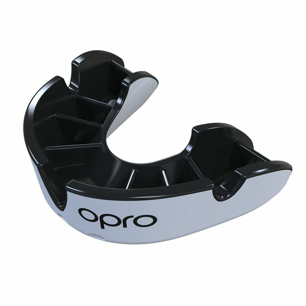 The durable outer layer of the dual layer Match Level Silver Self-Fit mouthguard from OPRO provides enhanced impact protection. Unique features of the Silver mouthguard include: Patented Fins provide a highly retentive fit after moulding Fitting Handle for ease of fitting Biomaster Antimicrobial Protection is proven to inhibit the growth of bacteria by up to 99.99% Dental Warranty up to 12,500 for added peace of mind Suitable for all contact sports The mouthguards stretch zones allow it to fit almost any mouth and the wide open palate makes speech and breathing easy whilst the mouthguard is being worn. The easy to fit mouthguard has 11 fins which break down on moulding to provide a superior custom-fit inner channel Specially designed case Latex Free Not suitable for wearers of fixed braces Suitable for age 10+
