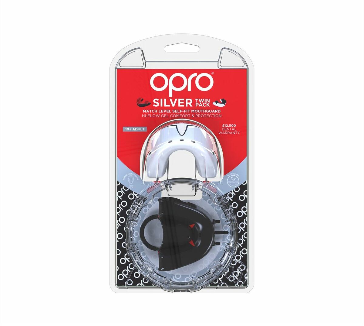 Black-White Opro Silver Twin Pack Gen 4 Mouth Guard