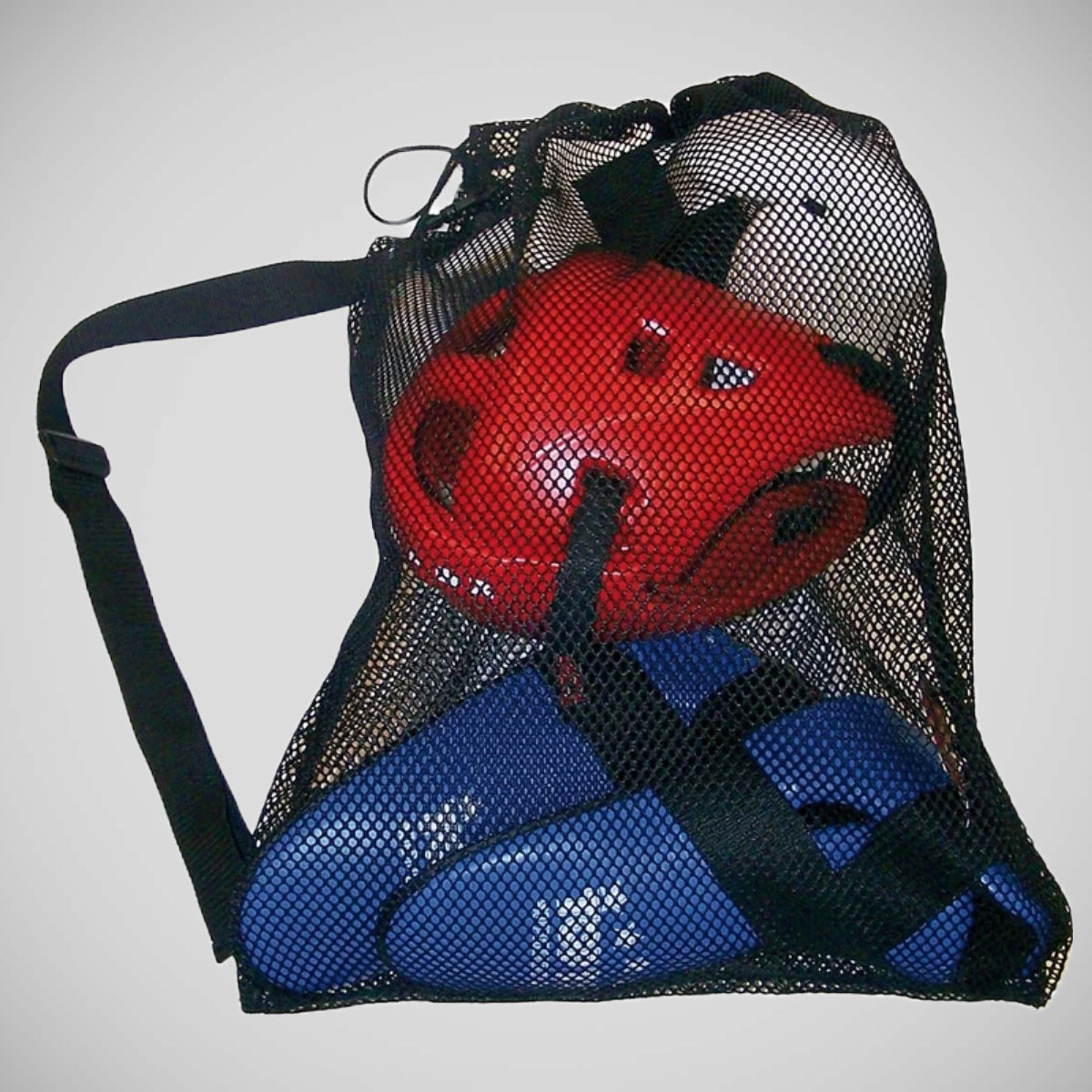 Practical shoulder bag in resistant Mesh material, Ideal for sparring equipment. TOP TEN embroided shoulder strap. Size: 70cm x 65cm