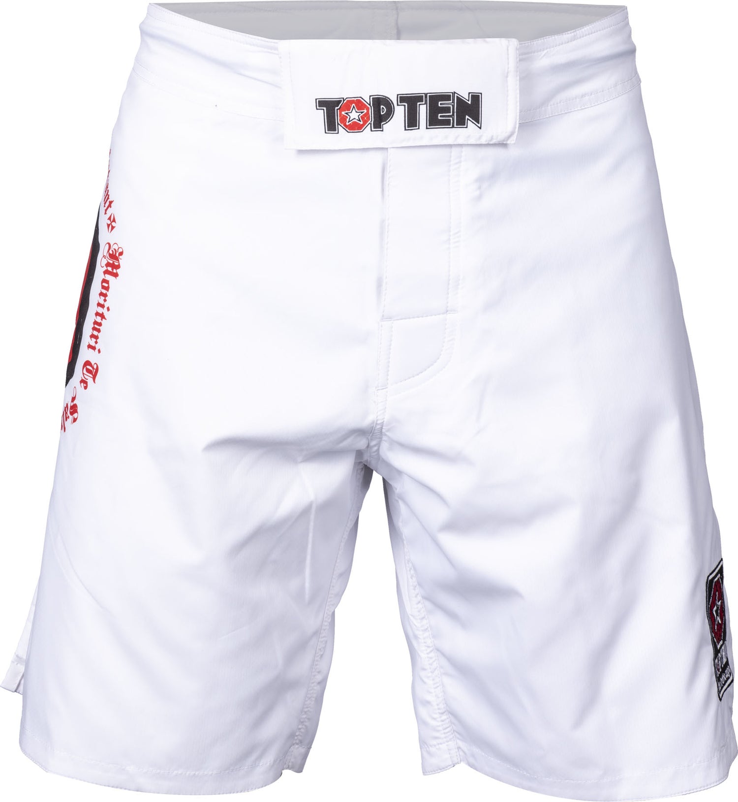 TOP TEN MMA MMAShorts “Morituri Te Salutant = - White / 150 cm / XS is available for Pre-Order. Stock is incoming and will be reserved for you.