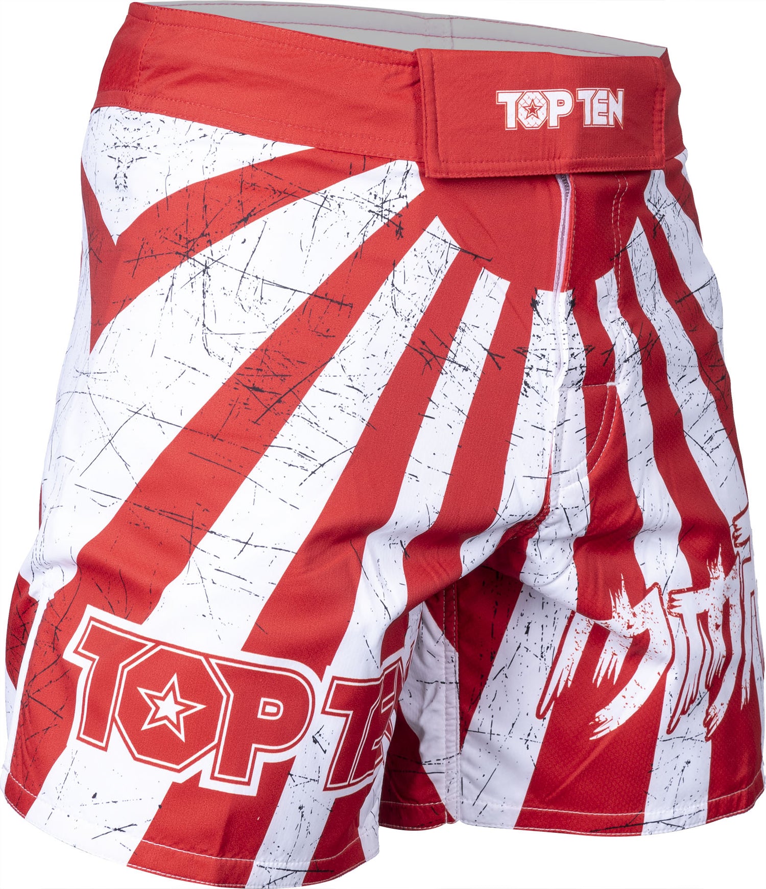 TOP TEN MMA MMAShorts “Samurai” = whitered - White - Red / 160 cm / S is available for Pre-Order. Stock is incoming and will be reserved for you.