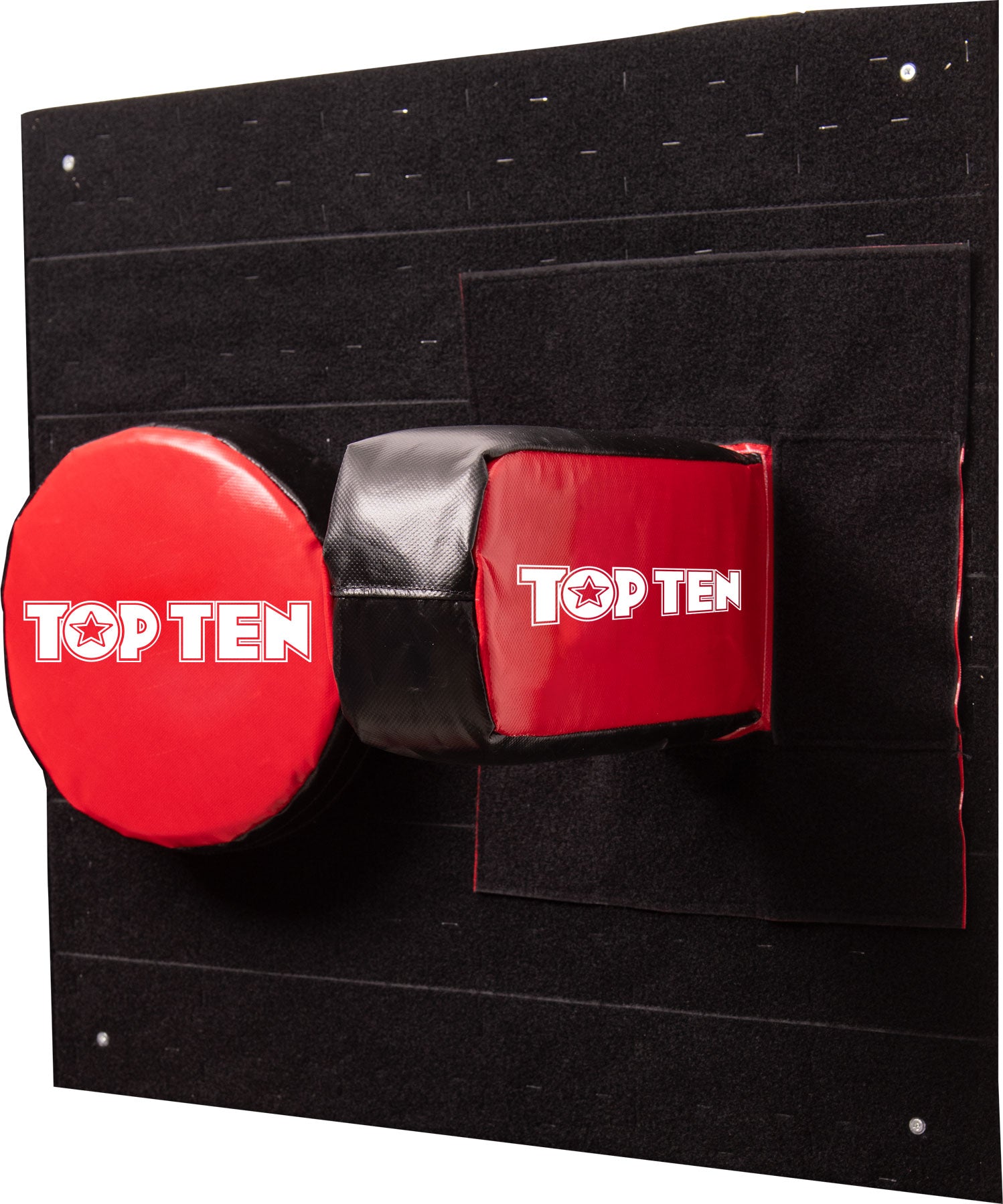 Time management is so stress-free today. Bring your fitness studio home with the TOP TEN Power Wall “Home Set” and train whenever you want at the highest TOP TEN level. The set includes the chipboard with the dimensions 62 cm x 62 cm as well as a round, small target, and the arm target in size M. The elements adhere to bomb-proof thanks to the innovative hook and loop system from Trocellen but can be easily adjusted in height and position. The impact-resistant foam core of the punch pads is enclosed in a full synthetic leather cover, easily cleaned if necessary.