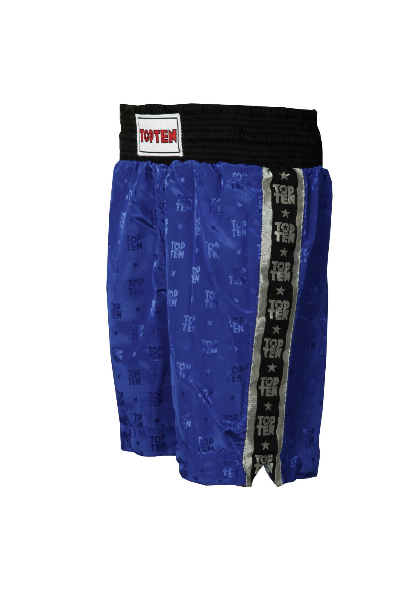If you are looking for a light companion for your everyday sports life, you cannot avoid the “TOP TEN Stripe” shorts. Breathable and quick drying, they meet the requirements for functional shorts with a unique application in martial arts. The soft, extra-high waistband gives the “TOP TEN Stripe” a secure hold. The width can be individually adjusted to the wearer via an internal drawstring. The classic cut of boxing trousers includes side cuts, which ensure maximum mobility. TOP TEN has also skilfully implemented this feature, making the “TOP TEN Stripe” trousers ideal for numerous martial arts styles.