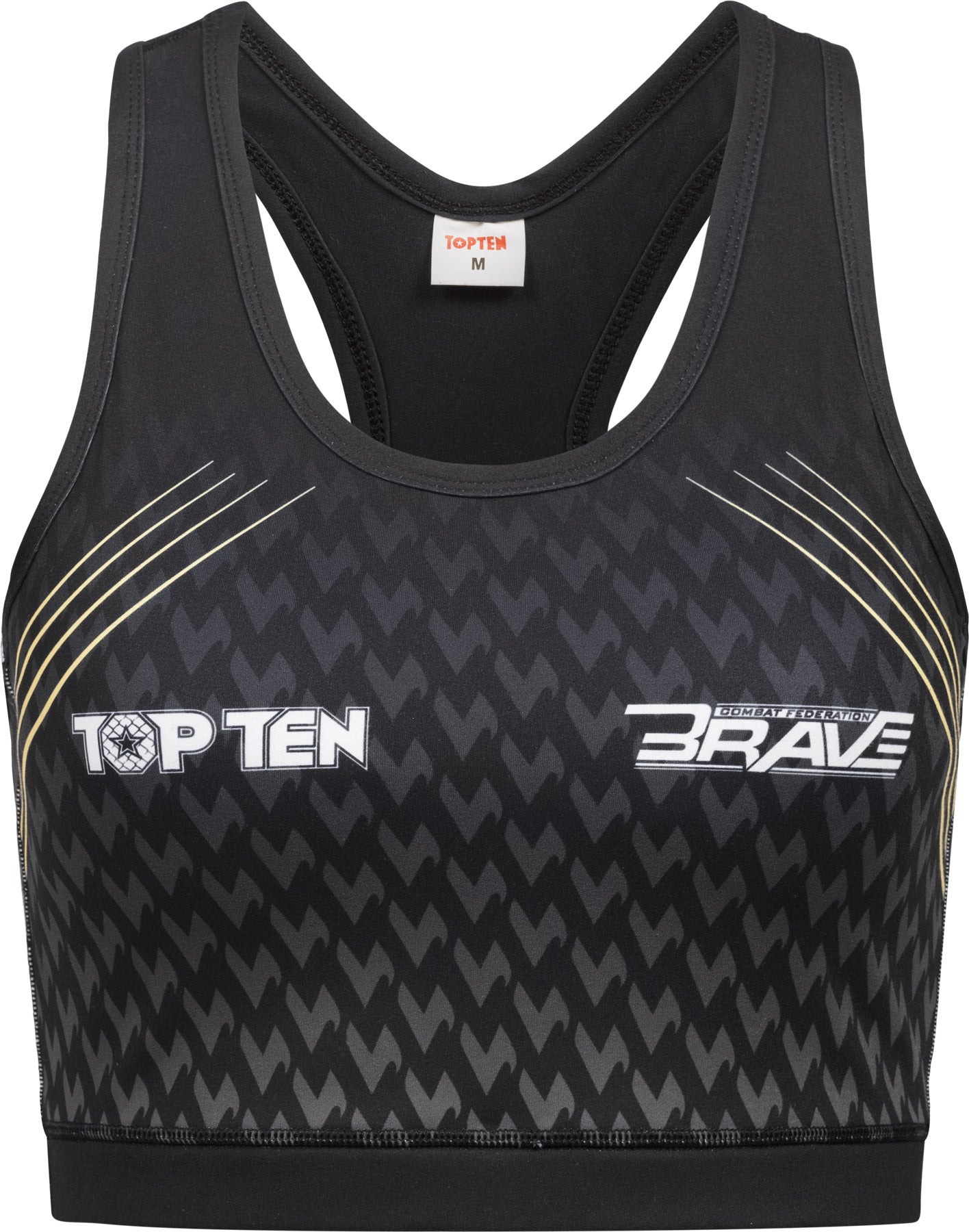 TOP TEN Sports Bra “BRAVE Fight Night” - Black / L is available for Pre-Order. Stock is incoming and will be reserved for you.